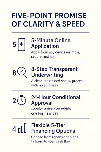 Secure Equipment with 100% Financing + 5 Flexible Terms + 8‑Year Support Backing